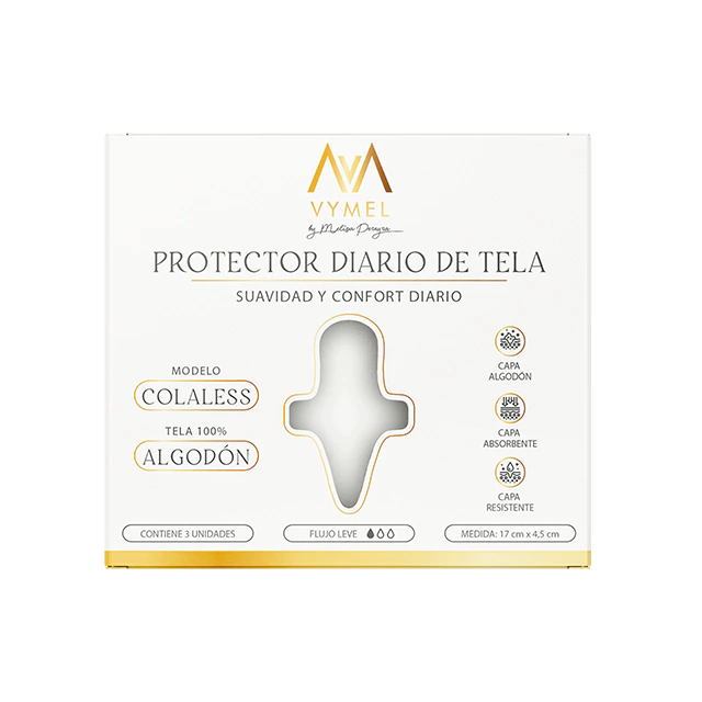Este set incluye 3 protectores diarios colaless de tela 100% algodón con 1 capa de absorbente.