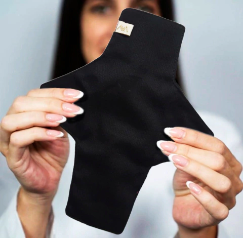 El lado que tiene la etiqueta va en contacto con tu ropa interior.
