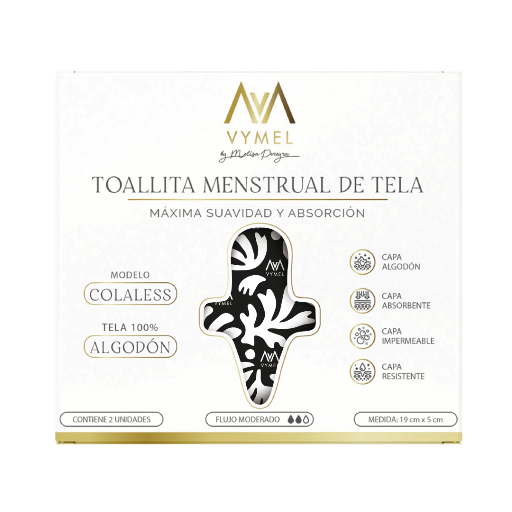 Este set incluye dos toallitas menstruales colaless de tela 100% algodón con 1 capa de absorbente + tela impermeable dentro.